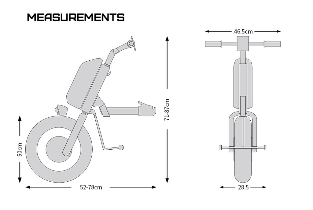 Az elektromos segédmeghajtó kompatibilis a legtöbb kerekesszékkel, amelyeknek a keretátmérője 2,54–3,2 cm, és a jobb és bal villa közötti szélessége 31–41 cm.